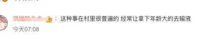 「这种事在村里很普遍的 经常让那些年龄大的去输液」